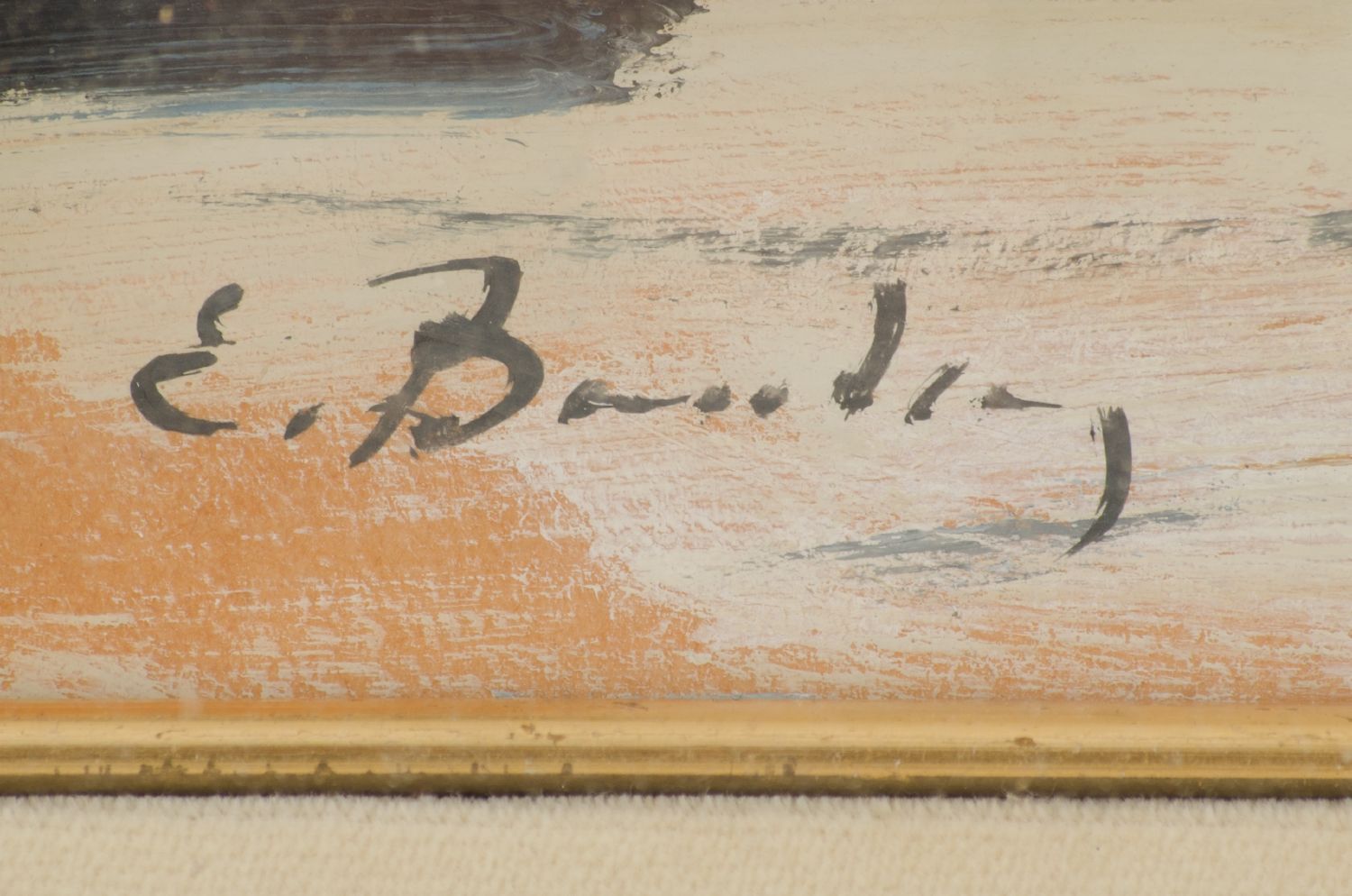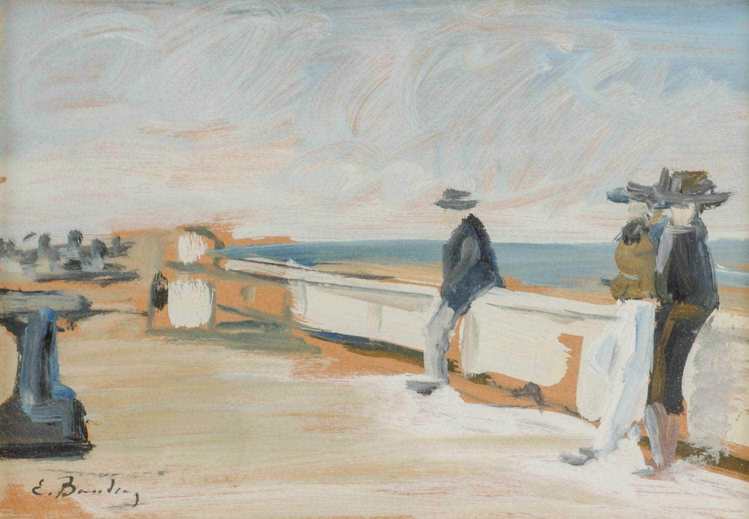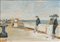 OLIO su cartoncino "lungomare con personaggi" firmato in basso a sinistra. Primi '900 Misure: cm 23 x 33