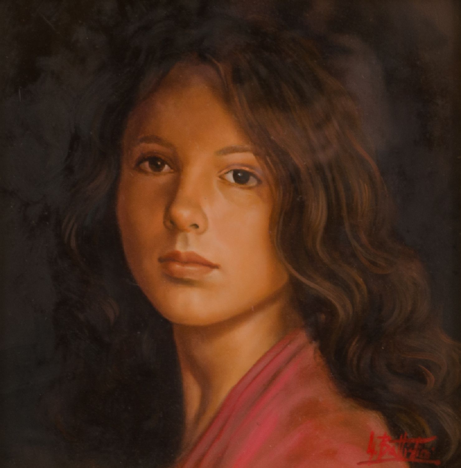 BATTISTINI OLIO su tela "volto femminile", firmato in basso a destra. XX secolo Misure: cm 30 x 30