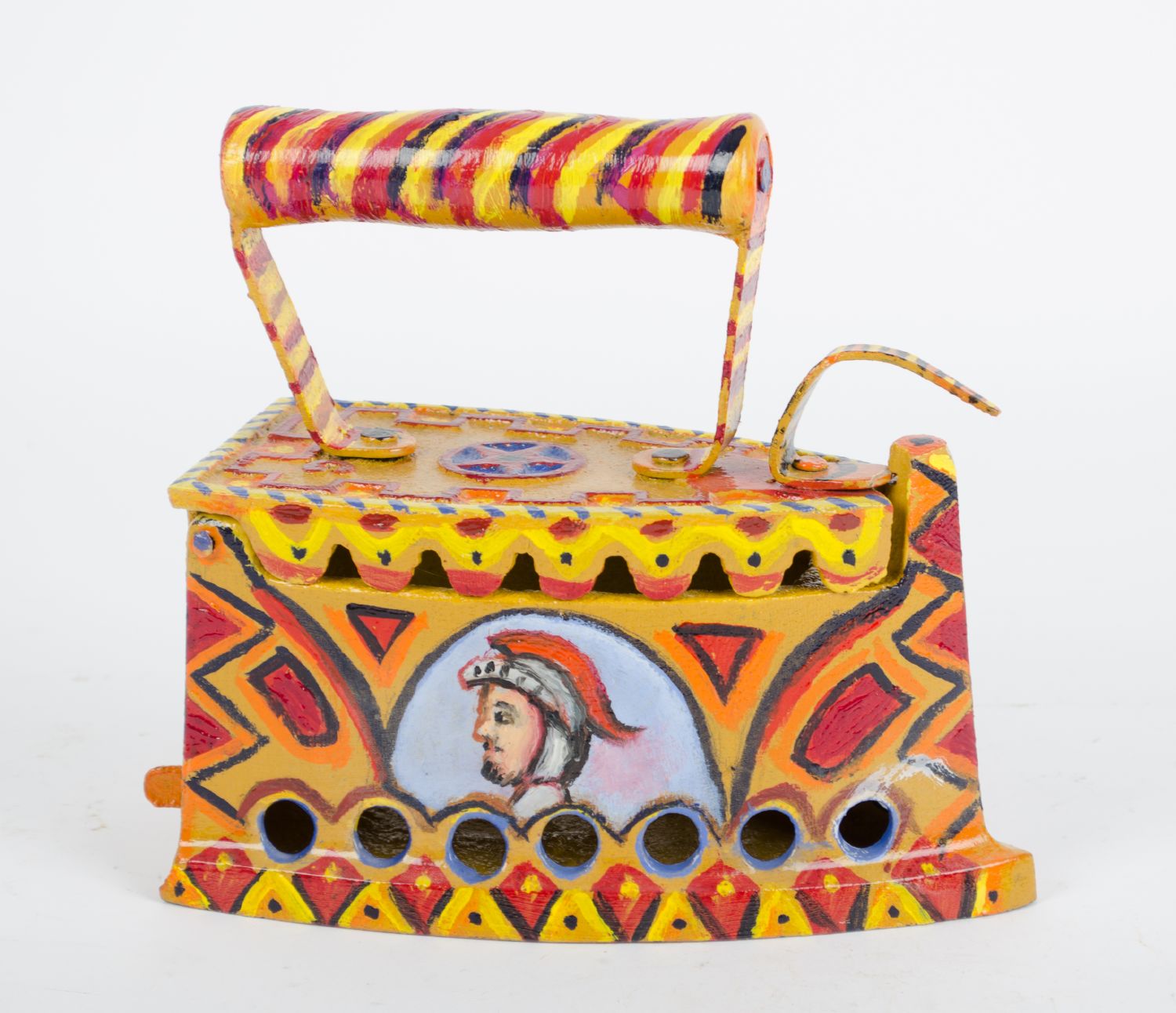 Lotto 725 | FERRO da stiro dipinto a motivo di carretto siciliano. XX secolo Misure: cm...