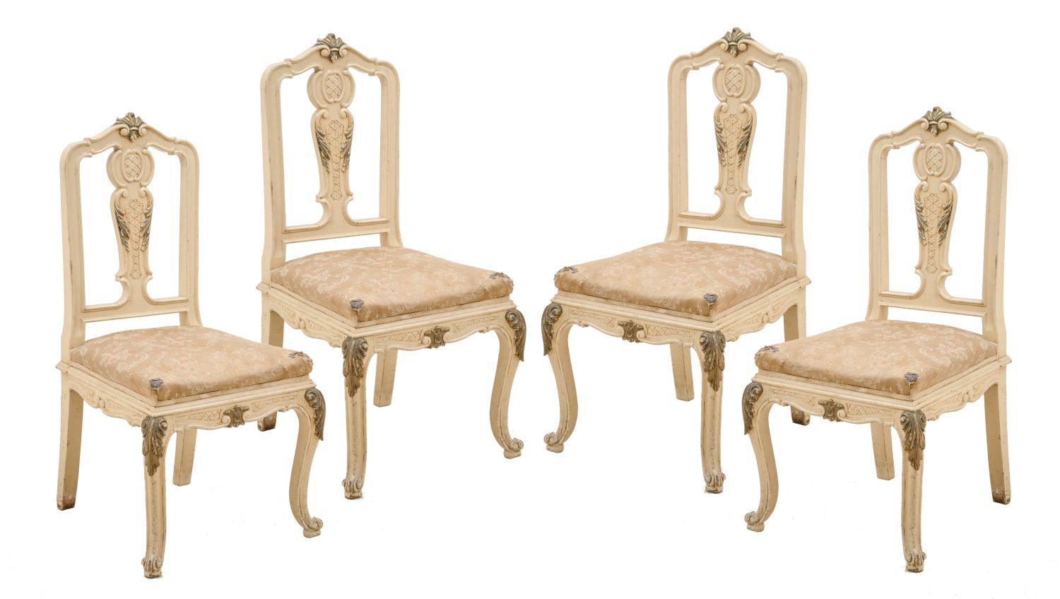 QUATTRO SEDIE in legno laccato (seduta h cm 39). Sicilia primi '900 Misure: h cm 88