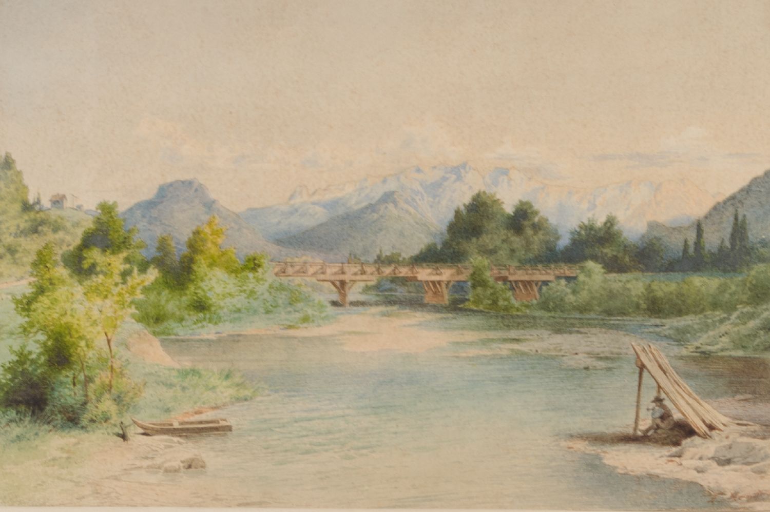 LUDWIG HOLNSTEIN ACQUARELLO "paesaggio fluviale" firmato in basso a destra...