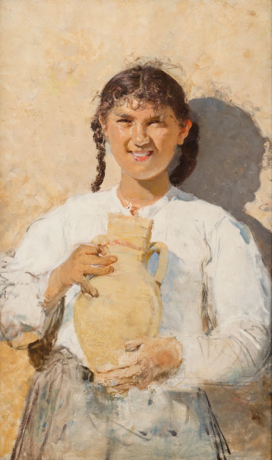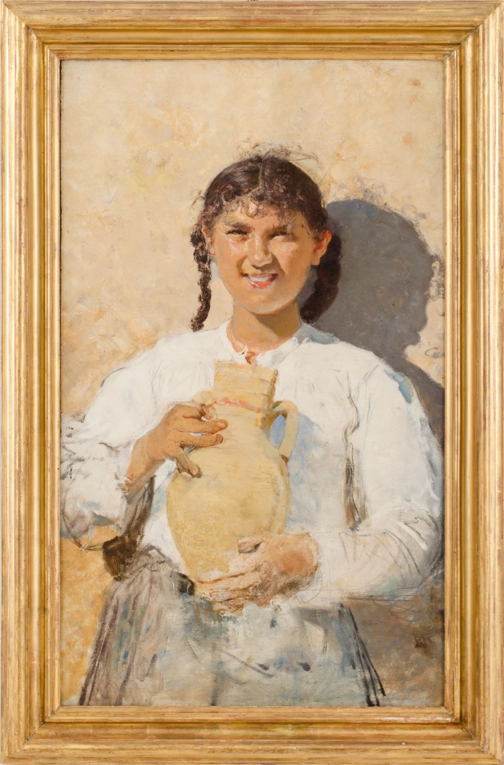 PAOLO VETRI (Castrogiovanni 1855 - Napoli 1937) OLIO su tela "caprese" (pubblicato nel volume "Poliorama Pittoresco" edito da Silvana Editore a pag. 166 - 167), (Bibliografia: Limoncelli 1939 a pag. 15). Misure: cm 90 x 54