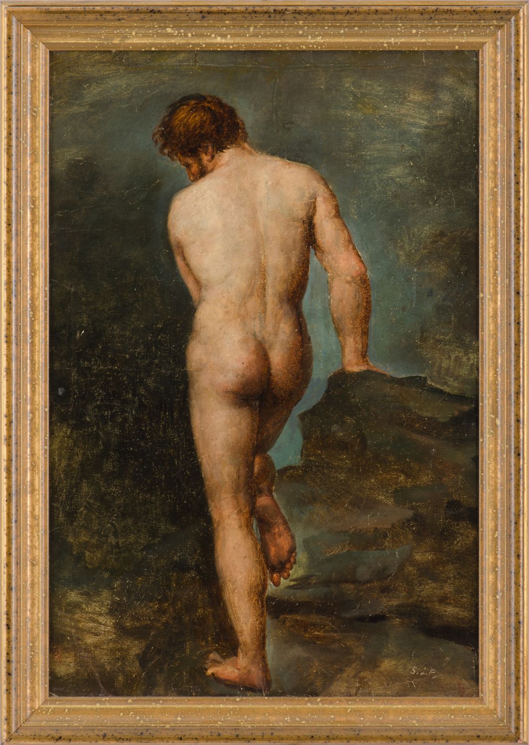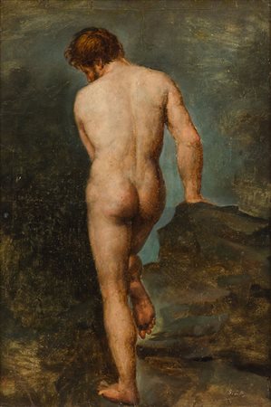 SALVATORE LO FORTE (Palermo 1809 - 1885) OLIO su carta applicato su tela "studio di nudo virile di spalle", monogrammato in basso a destra, (pubblicato nel volume "Ottocento Siciliano" edito da Electa Napoli a pag. 128 - 129). Misure: cm 50 x 33,5