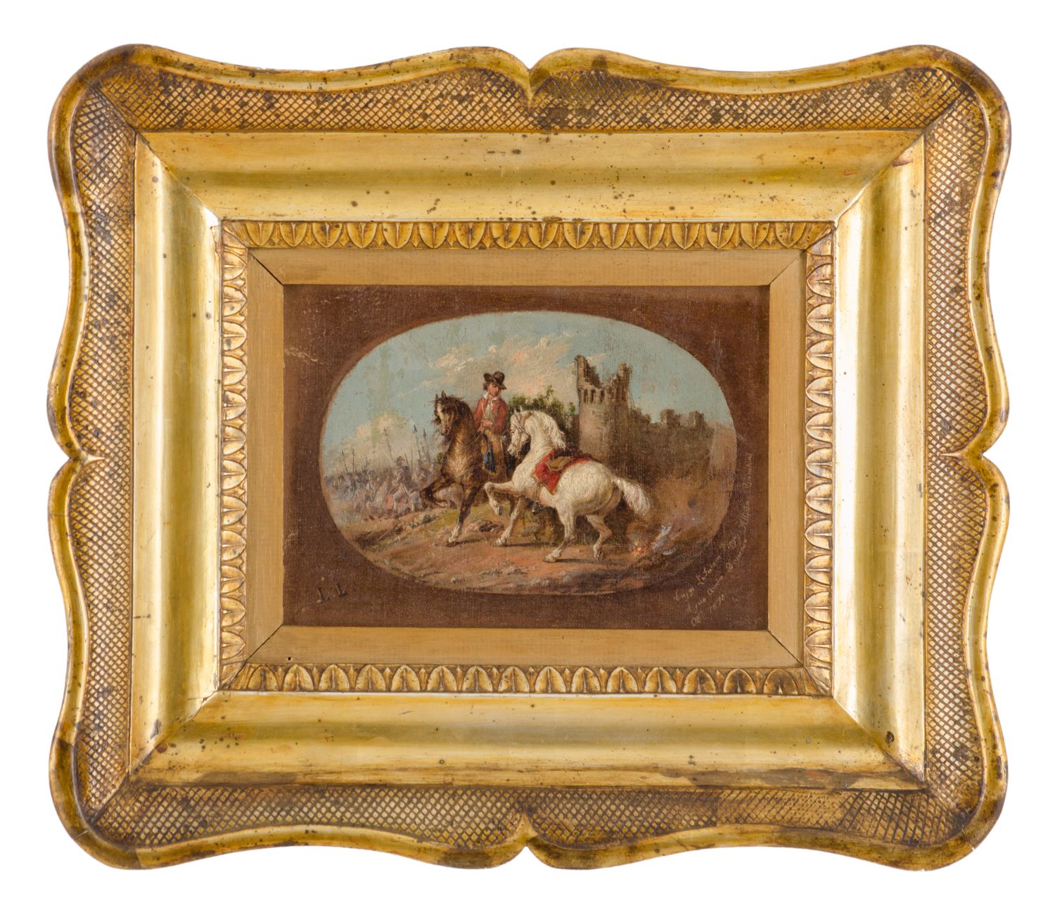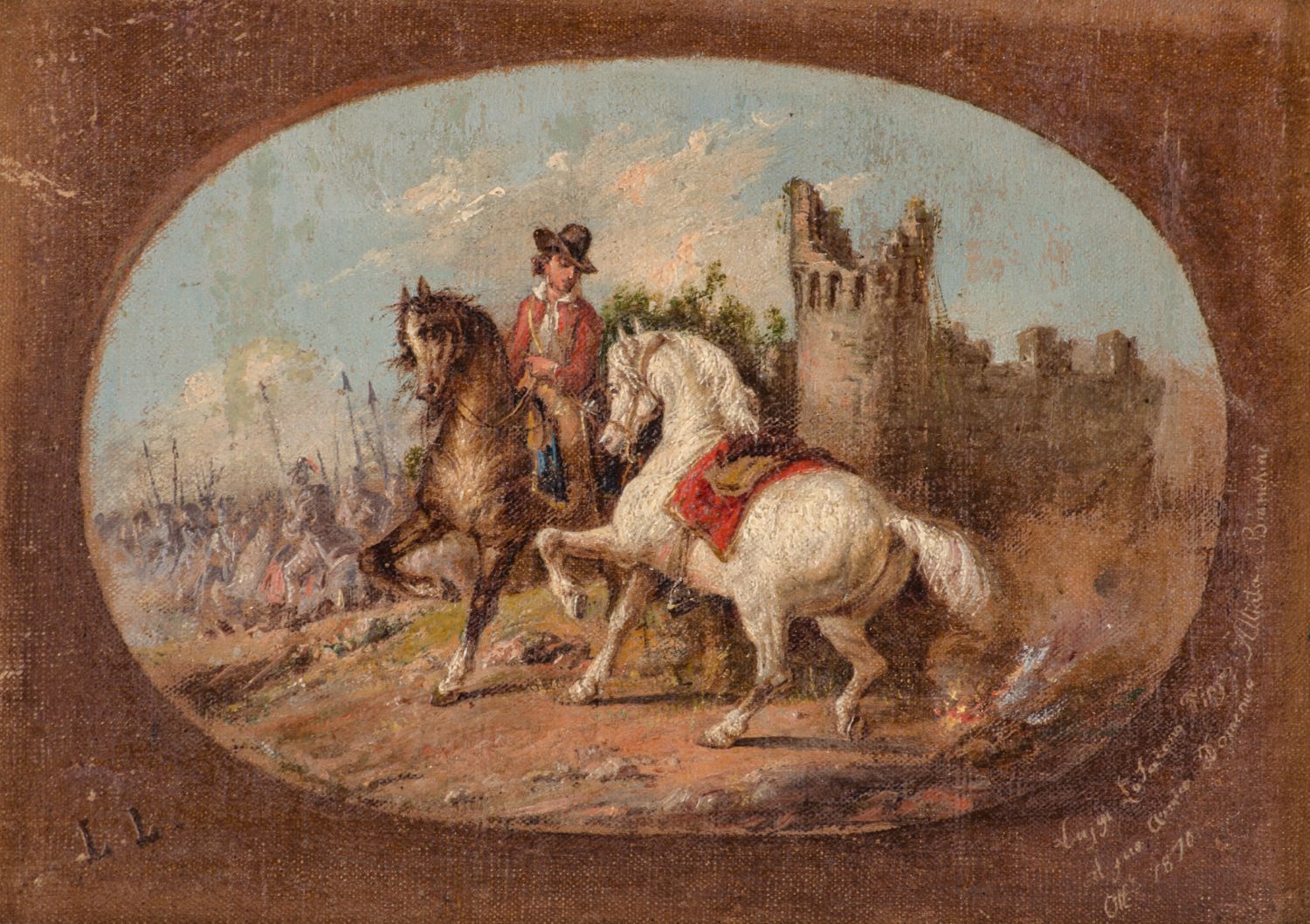 LUIGI LOJACONO (Palermo 1810 - 1880) OLIO su tela "scena di battaglia", firmato in basso a destra e monogrammato in basso a sinistra (pubblicato nel volume "Ottocento Siciliano" edito da Electa Napoli a pag. 139 - 140). Misure: cm 17,5 x 23,5