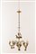 LAMPADARIO a sei luci in porcellana dipinta e decorata con personaggi a rilievo. XX secolo Misure: h cm 70
