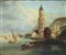 Anonimo, sec. XIX PAESE SUL LAGO Olio su tela, cm. 28x46