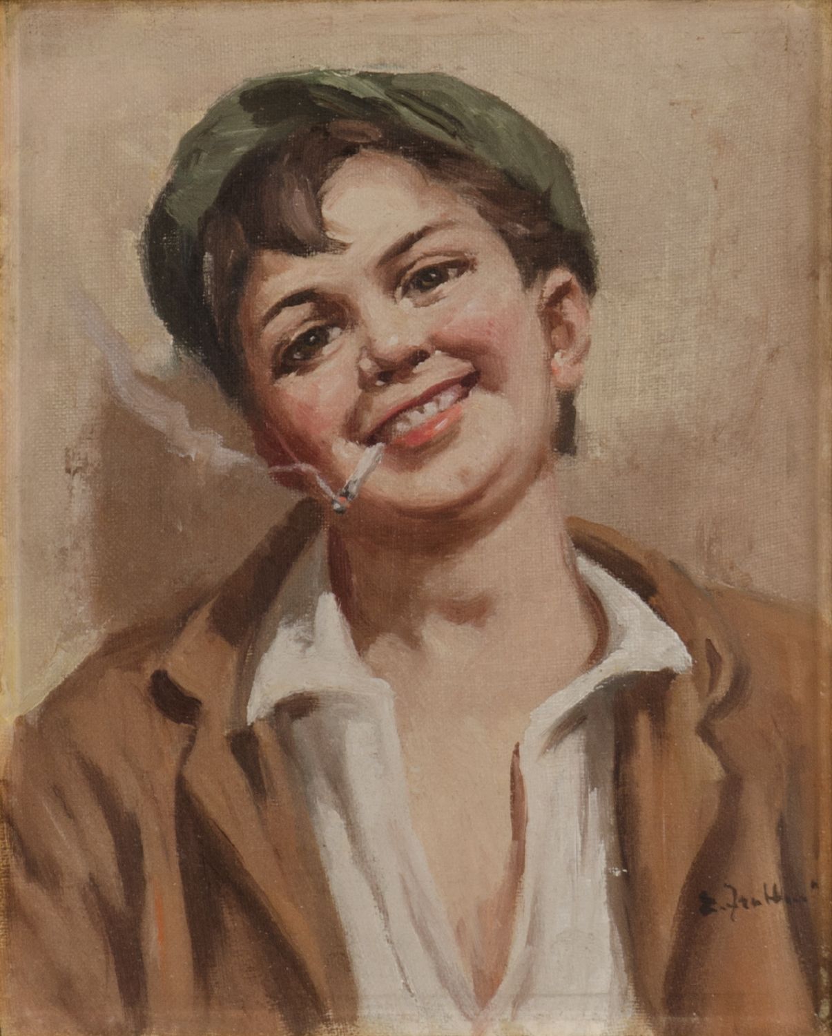 ENRICO FRATTINI (1890 - 1968) OLIO su tavoeltta "scugnizzo", firmato in basso a destra. Misure: cm 26,5 x 27,5