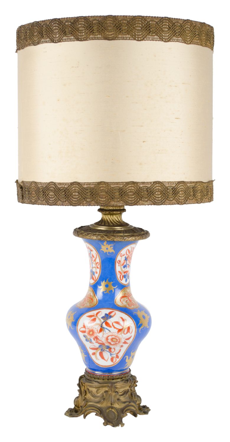LUME in porcellana decorata con base e parte superiore in bronzo. Francia XIX...