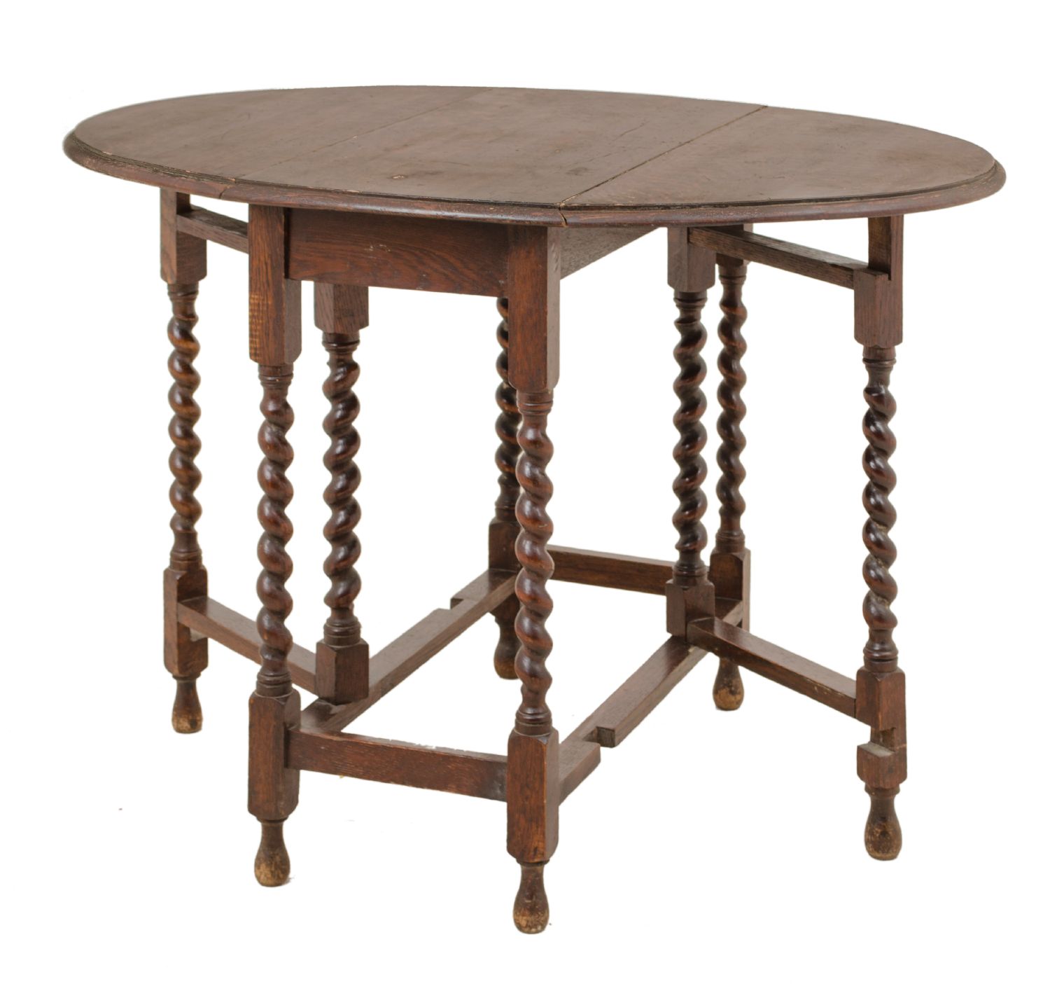 TAVOLO con alette in rovere con piedi a torciglione. Francia XIX secolo Misure: cm 104 x 75 x h 73