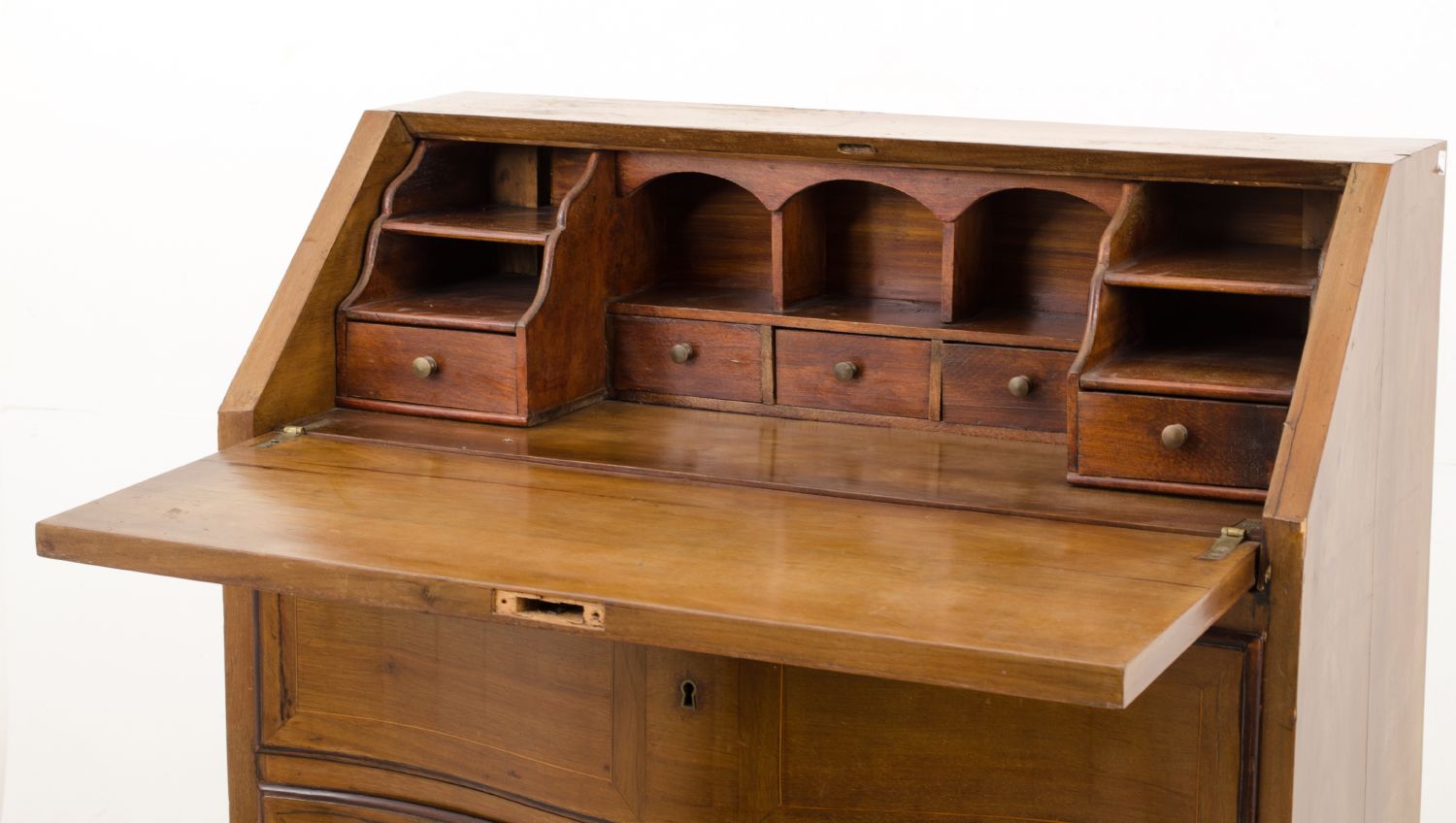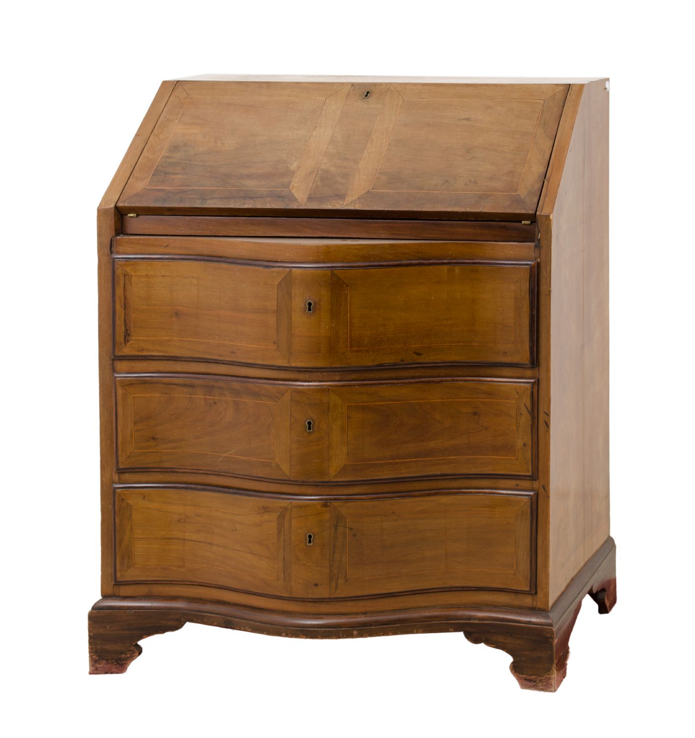 RIBALTINA a tre cassetti in noce con perfili in bosso. Inghilterra primi '900...