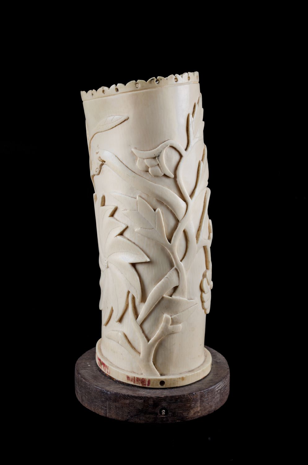 SEZIONE DI ZANNA in avorio lavorata a motivo floreale e fogliaceo con animali trasformata in lampada. Fine '800 Misure: h cm 26
