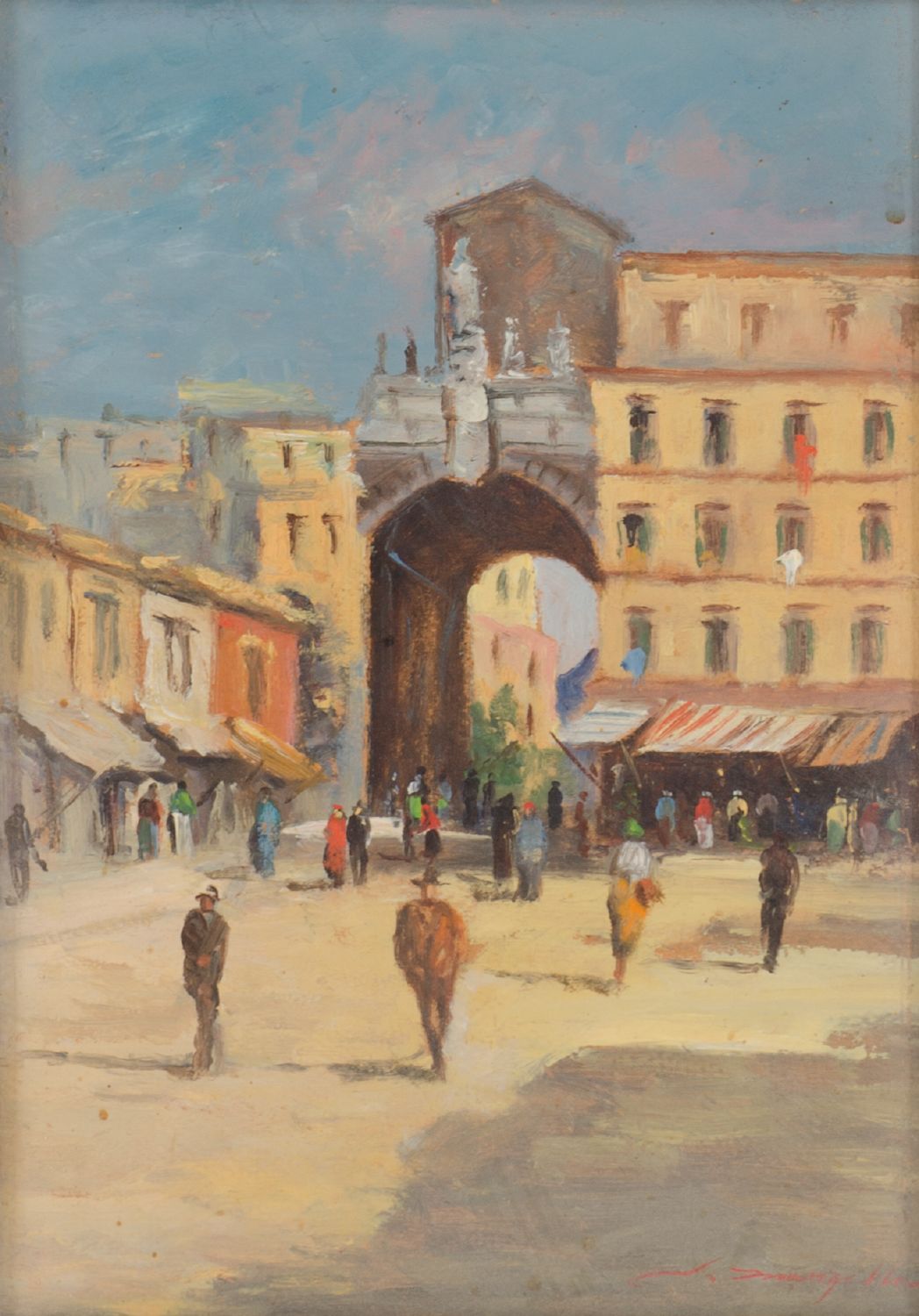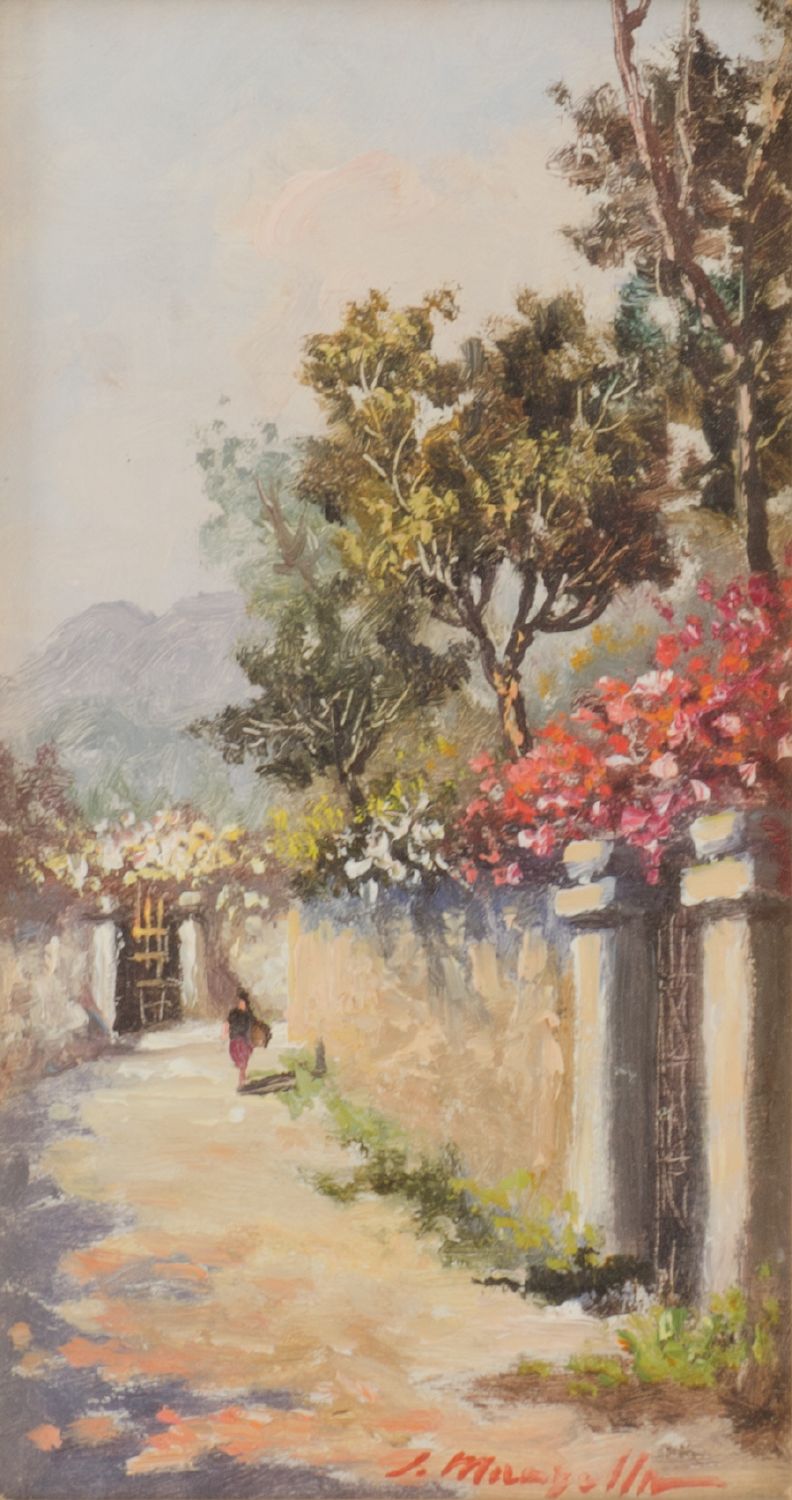 SALVATORE MANZELLA LOTTO composto da OLIO su tavoletta "viale alberato" e da OLIO su cartoncino "piazza cittadina" datato 1962. XX secolo Misure: cm 26 x 14 - 33 x 24