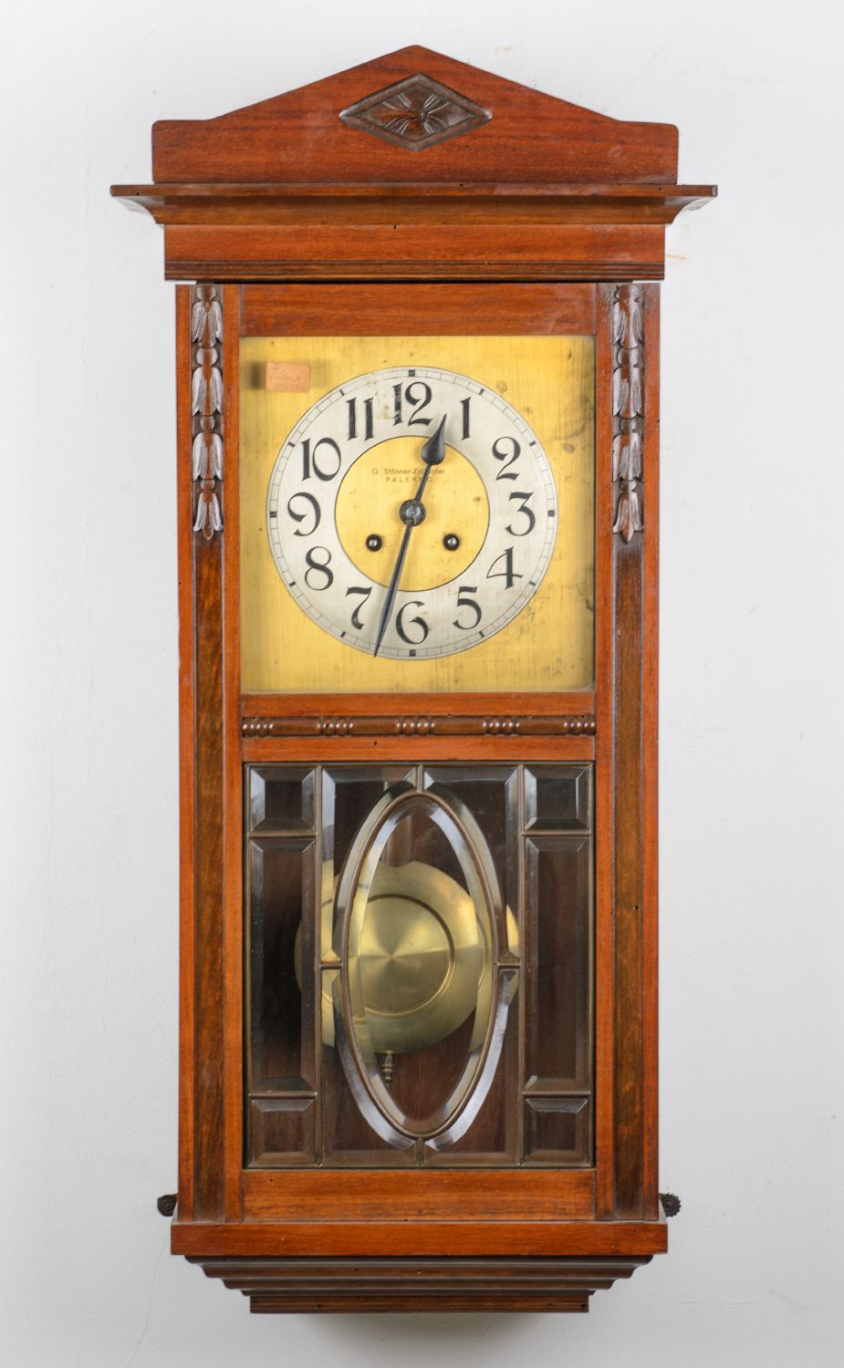 OROLOGIO da muro Liberty in noce con quadrante in metallo. Primi '900 Misure: cm 36 x 18 x h 77