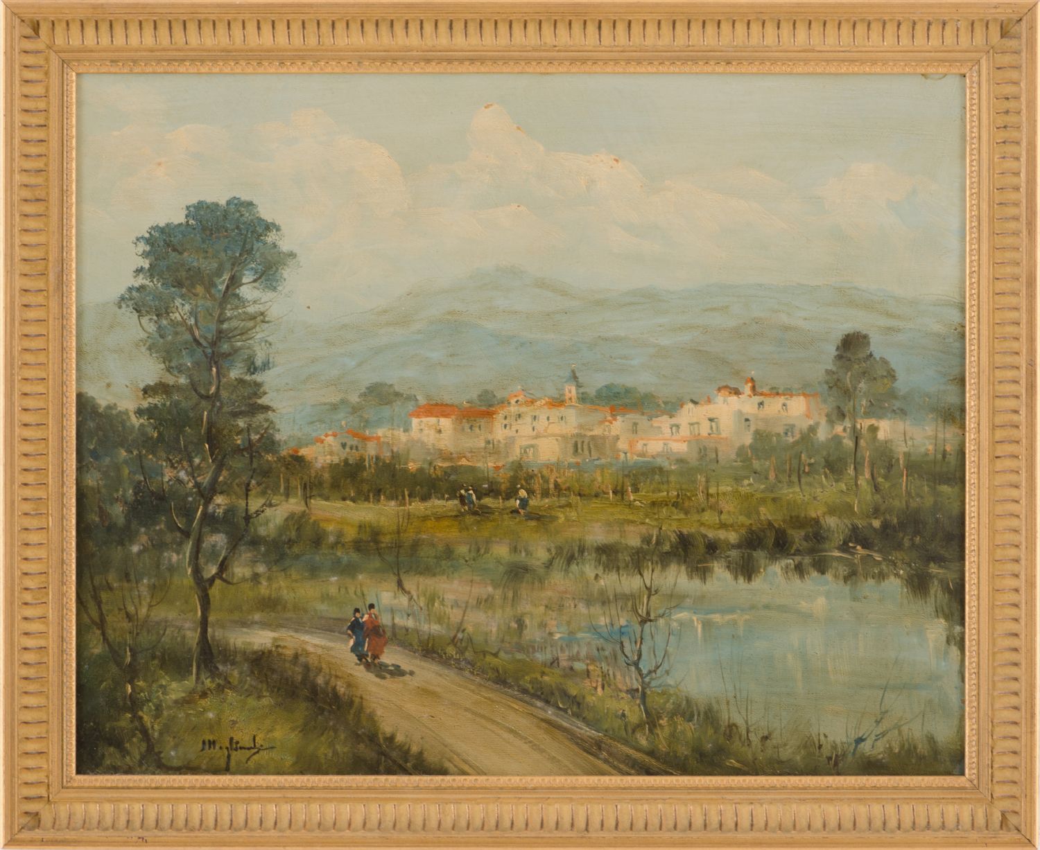 Lotto 1025 | MIGLIARDI OLIO su tavoletta "la passeggiata vicino al lago", firmato in basso...