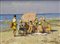 Giorgio Luxardo (Zara, 1930) BAGNANTI CON OMBRELLONE ROSSO Olio su tavola, cm. 15x20 Firma in basso a destra. Sul verso: firma e titolo.
