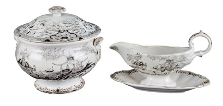 LOTTO composto da ZUPPIERA e da SALSIERA in porcellana. Inghilterra fine '800 Misure: varie