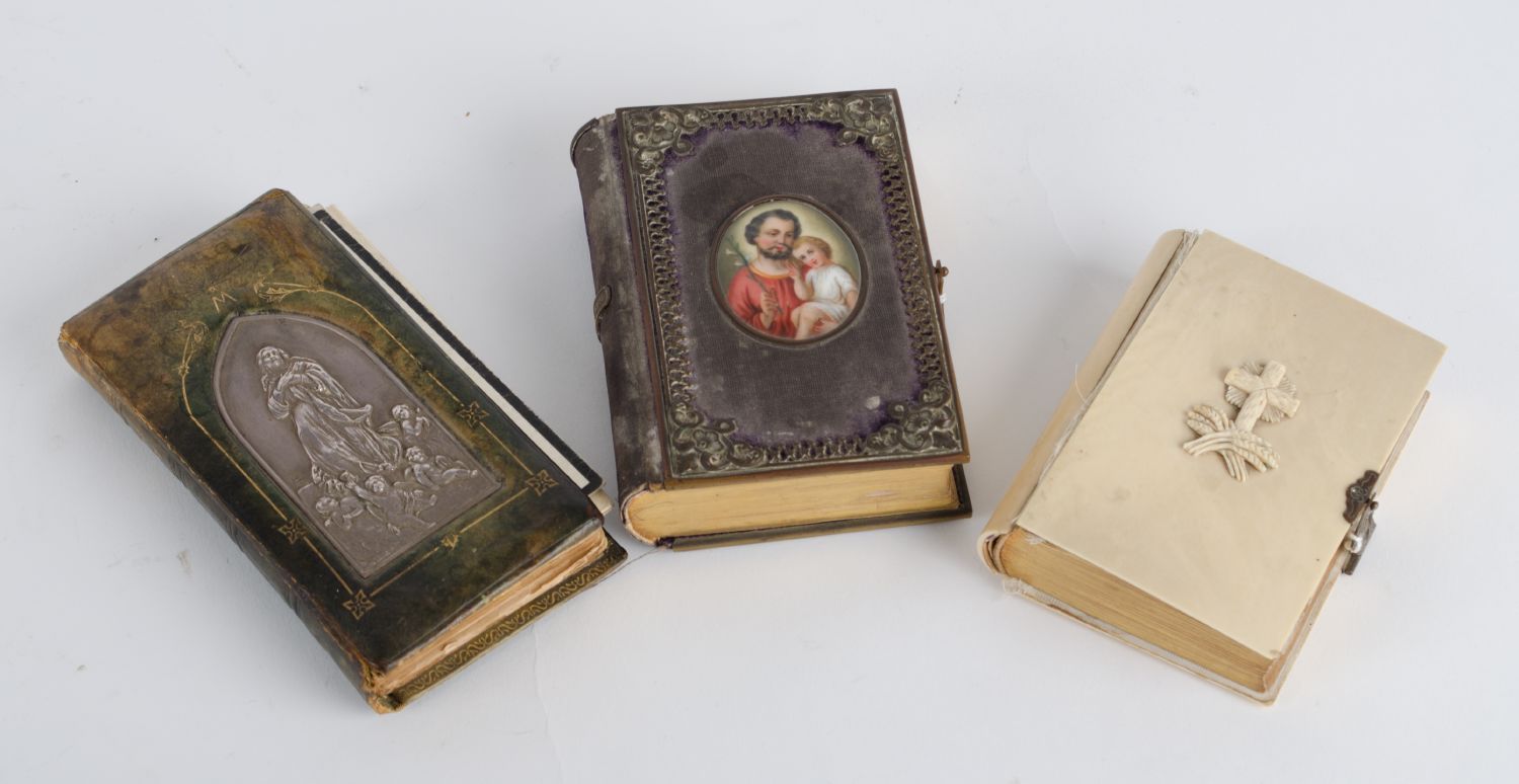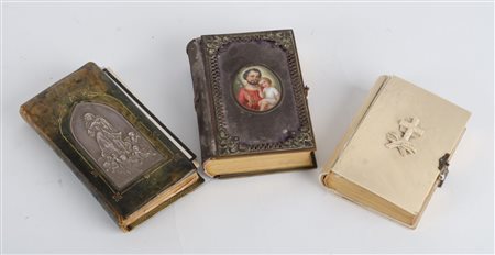LOTTO composto da MESSALE con placca in porcellana, MESSALE con placca in avorio e da MESSALE con placca in argento. Primi '900 Misure: varie
