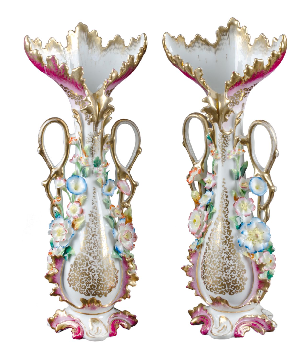 COPPIA VASI Luigi Filippo in porcellana riccamente lavorati, decorati e...