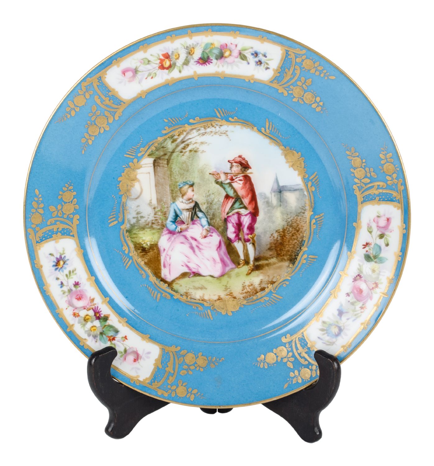 PIATTO in porcellana di Sevres decorato a mano raffigurante "scena galante"....