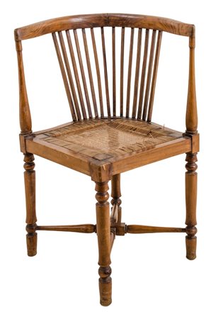 SEDIOLINA angolare in legno (usure) (seduta h cm 39). Sicilia primi '900 Misure: cm 55 x 60 x 74,5