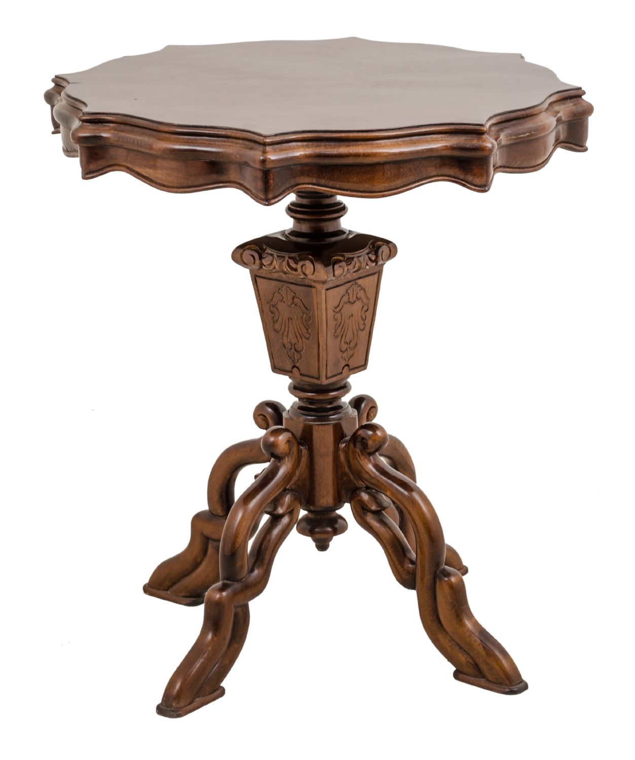 TAVOLINO smerlato in noce. Sicilia XX secolo Misure: cm 75 x 75 x h 82