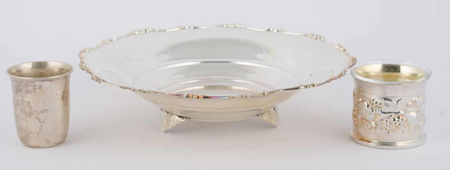 LOTTO composto da CENTROTAVOLA in argento, PICCOLO VASETTO in argento e da PORTA CAVIALE in argento 925. XX secolo Misure: varie