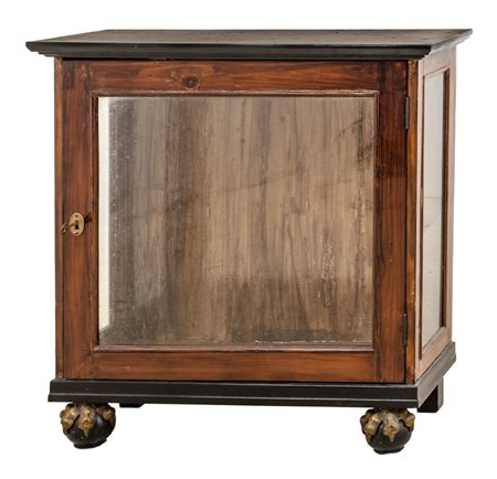 PICCOLA VETRINETTA in legno ad un'anta con piedi a zampa leonina dorati. XX secolo Misure: cm 71 x 29 x h 67