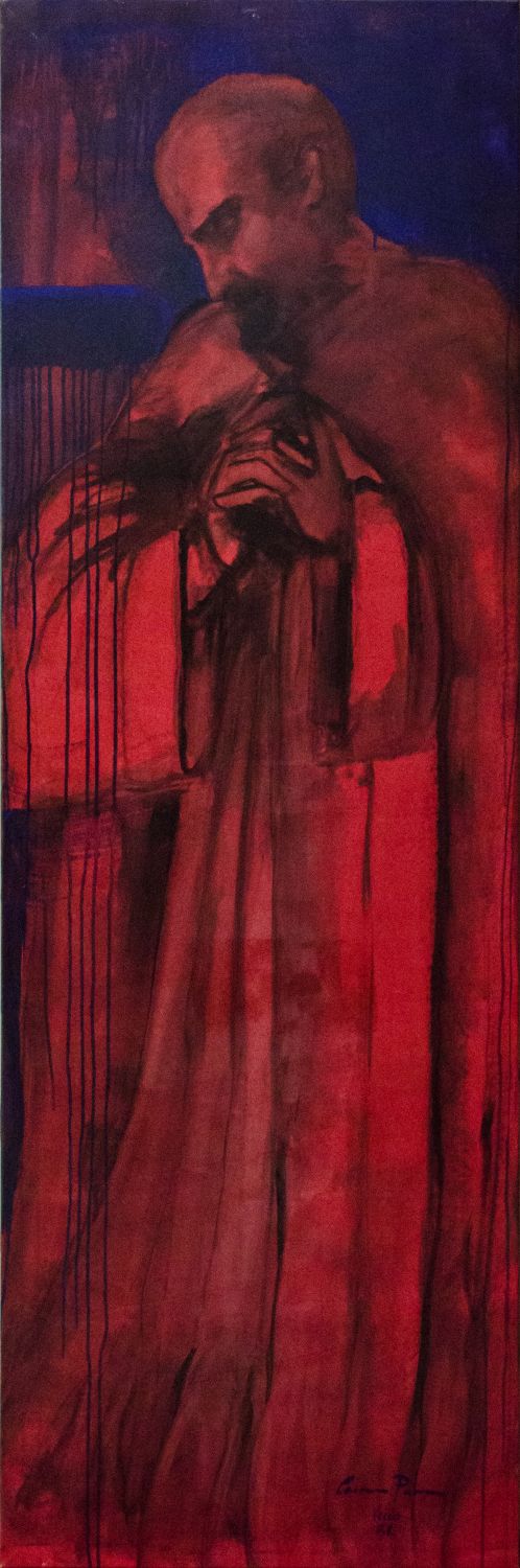 CARMEN PARRA (Ciudad de Mexico 1944) BEPPE VESCO (Palermo 1949) OLIO su tela "San Francesco". Misure: cm 180 x 65