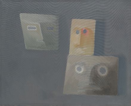 Franco Villoresi (Città di Castello, 1920 - Arezzo, 1975) MASCHERE, 1964 Olio su tela, cm 40x50,5 Firma, data e titolo sul verso. Sul verso: etichetta collezione Sandro Del Bene