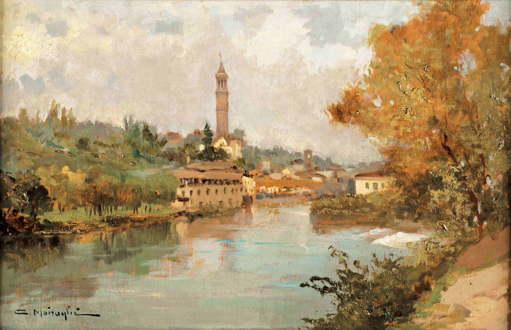 Carlo Moiraghi Binasco 1880-Milano 1943 Naviglio Firmato in basso a sinistra...