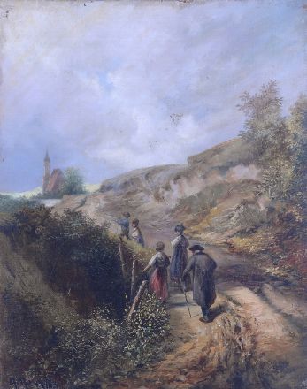G. Heins VIANDANTI Olio su tela, cm. 50,5x39,9 Firma in basso a sinistra.