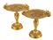 Coppia di eleganti alzatine in bronzo dorato decorate sul piano, figure allegoriche ed elementi ornamentali sul gambo e sulla base. Altezza cm 18, diametro cm 18