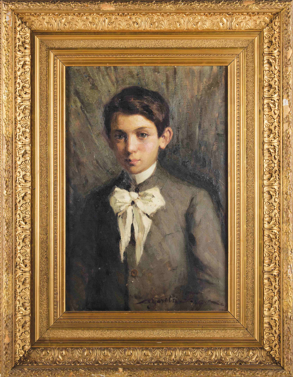 Mario Moretti Foggia Mantova 1882-Pecetto (NO) 1954 Ritratto di bambino Firmato in basso a destra Olio su tela. Misure cm 75 x 50