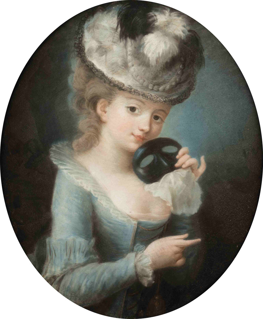 Scuola francese del XVIII secolo Coppia di dipinti: Fanciulla con maschera,...