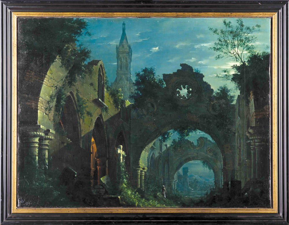 Antonio Basoli Castel Guelfo 1774-Bologna 1844 Nutturno Romantico al chiaro di Luna Olio su tela. Misure cm 60 x 80