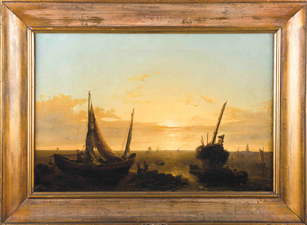 Emilio Donnini Firenze 1809-Firenze 1886 Marina con barche Firmato in basso a...