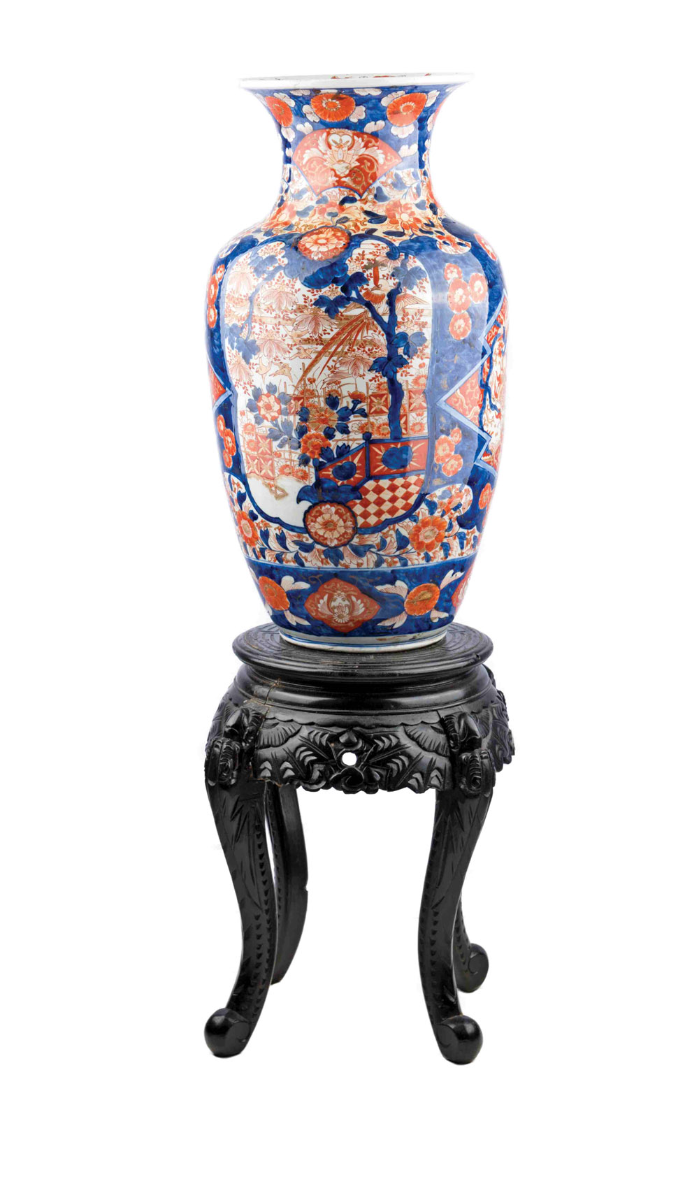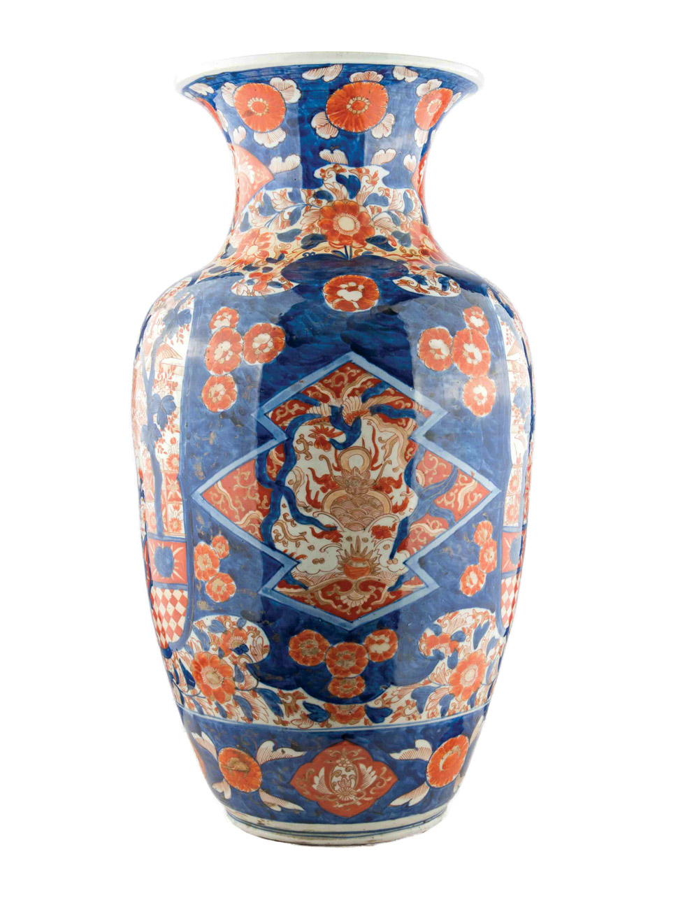 Vaso in porcellana Imari, Giappone XIX secolo Decoro naturalistico entro riserve. Altezza cm 62