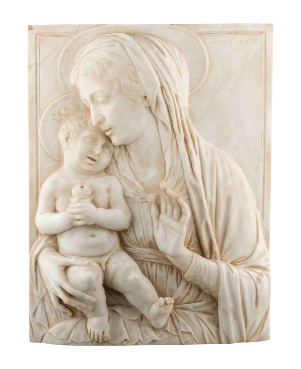 Alceo Dossena (1878-1937) Bassorilievo in marmo Madonna con Bambino iscritta...