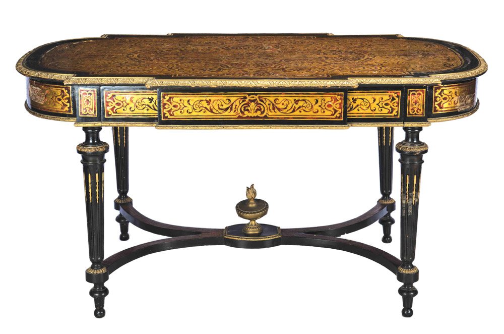 Tavolo Boulle XIX secolo Intarsi in tartaruga ed applicazioni di bronzi...