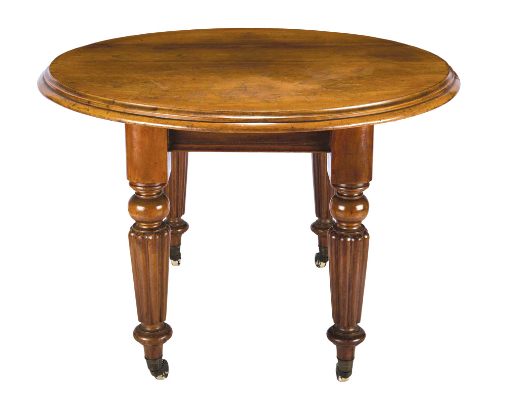 Tavolo da pranzo in mogano allungabile a manovella, Inghilterra XIX secolo Prolunga cm 40 Misure cm 76 x 100