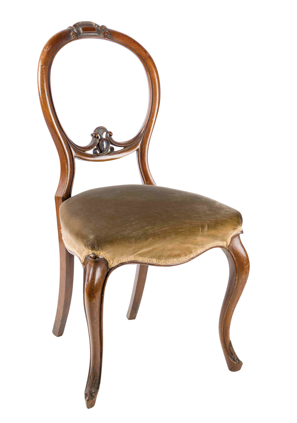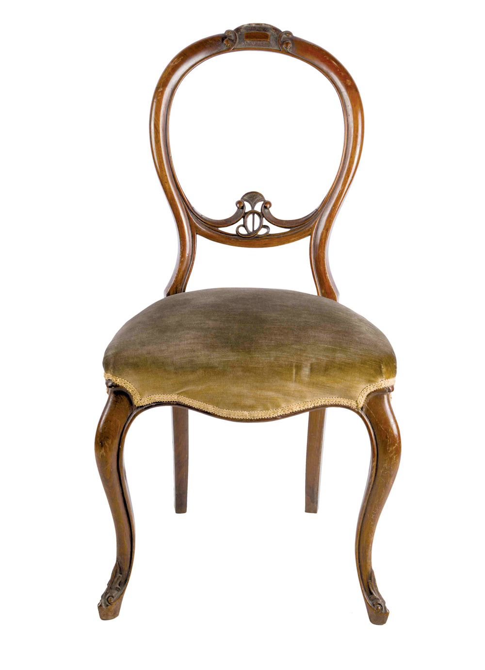 Gruppo di sei sedie in noce, Inghilterra secolo XIX con schienale traforato ed intagliato, gambe mosse. Misure cm 90 x 45 x 45