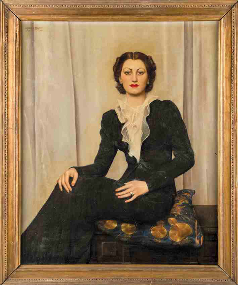Bruno Croatto Trieste 1875-Roma 1948 Ritratto di Gentildonna Firmato in alto a sinistra Olio su tela. Misure cm 110 x 90