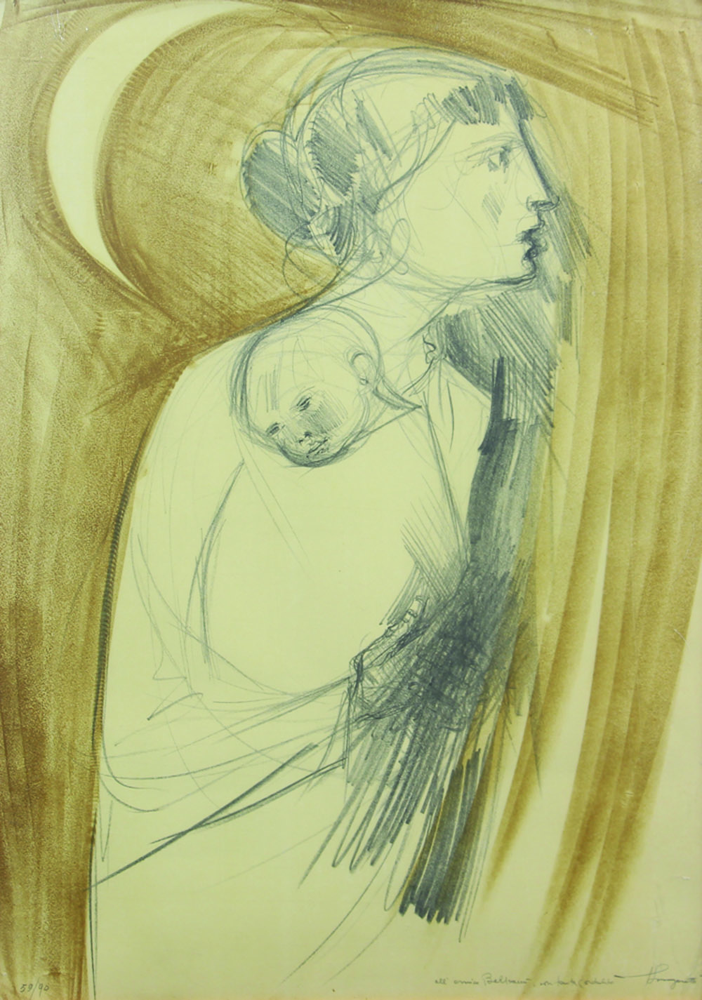 Lotto 2 | Trento Longaretti, Maternità, litografia su carta, cm. 70x50, es. 59/90,...
