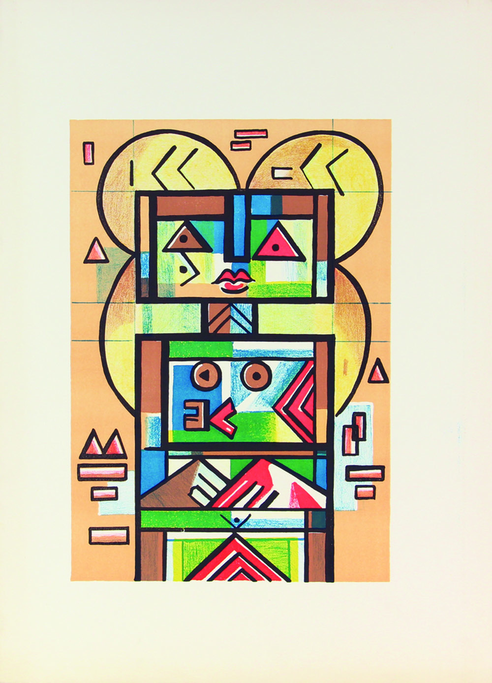 Ibrahim Kodra, Figura femminile, (1975 circa), litografia su carta, cm. 50x70, es. non numerato e non firmato, Franco Sciardelli Editore, sono presenti tracce di sporco al margine destro, senza cornice