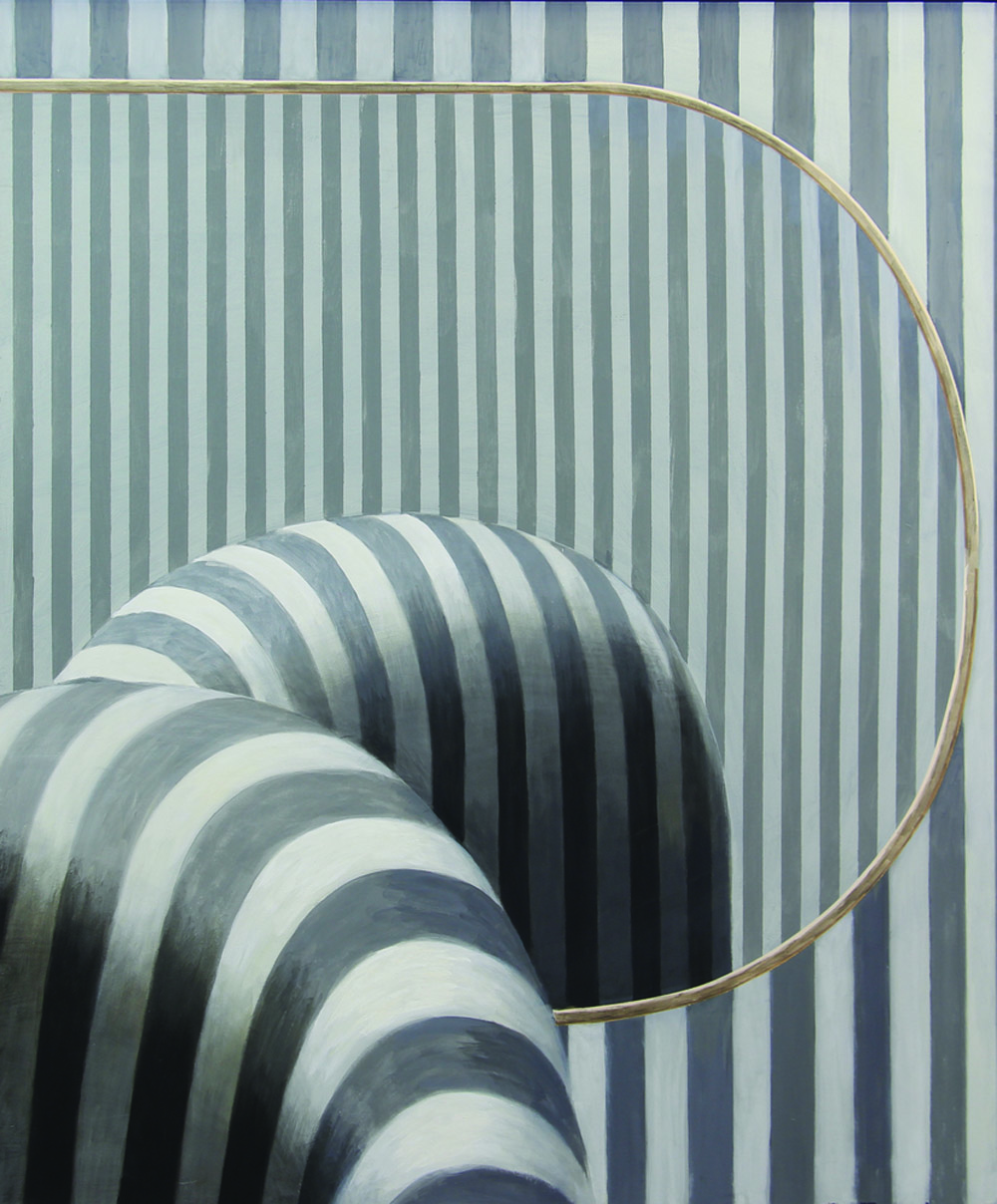 Gianfranco Goberti, Poltrona e Specchio, 2001, acrilico su tela, cm. 100x80, firmato, intitolato e datato al retro, opera pubblicata sul catalogo autore al n. 626