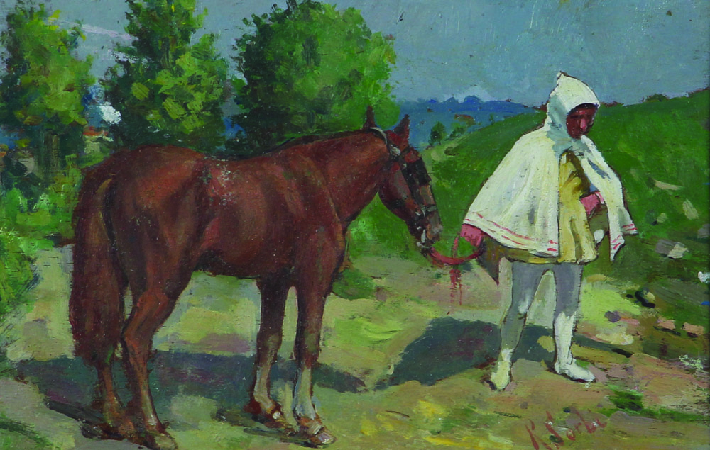 Raffaello Sorbi, Senza titolo, olio su tavola, cm. 11,5x17, firmato in basso a destra
