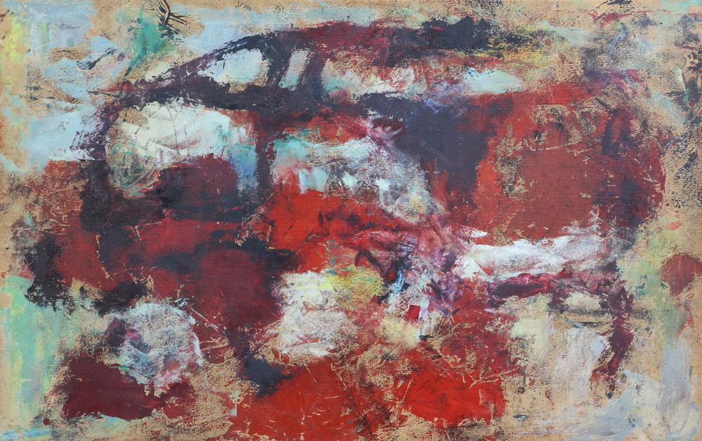 Edoardo Franceschini, Senza titolo, 1956, olio su carta intelata, cm. 35x55,...