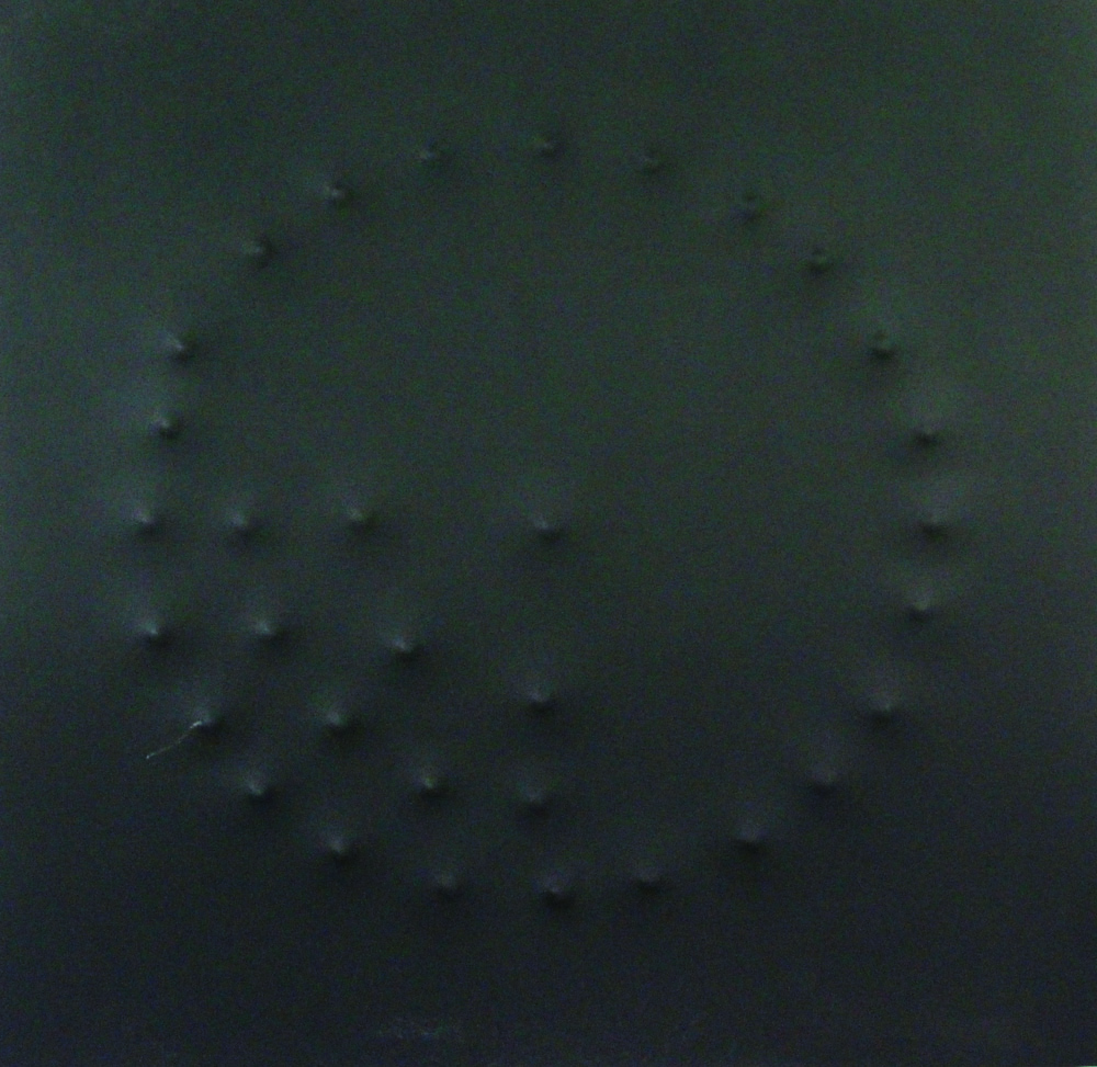 Angelo Brescianini, N. 33 SPARI DI PISTOLA CAL. 45, 2013, lastra in alluminio, cm. 100x100, firmata, intitolata e datata al retro, certificato di autenticità dell'artista su fotografia
