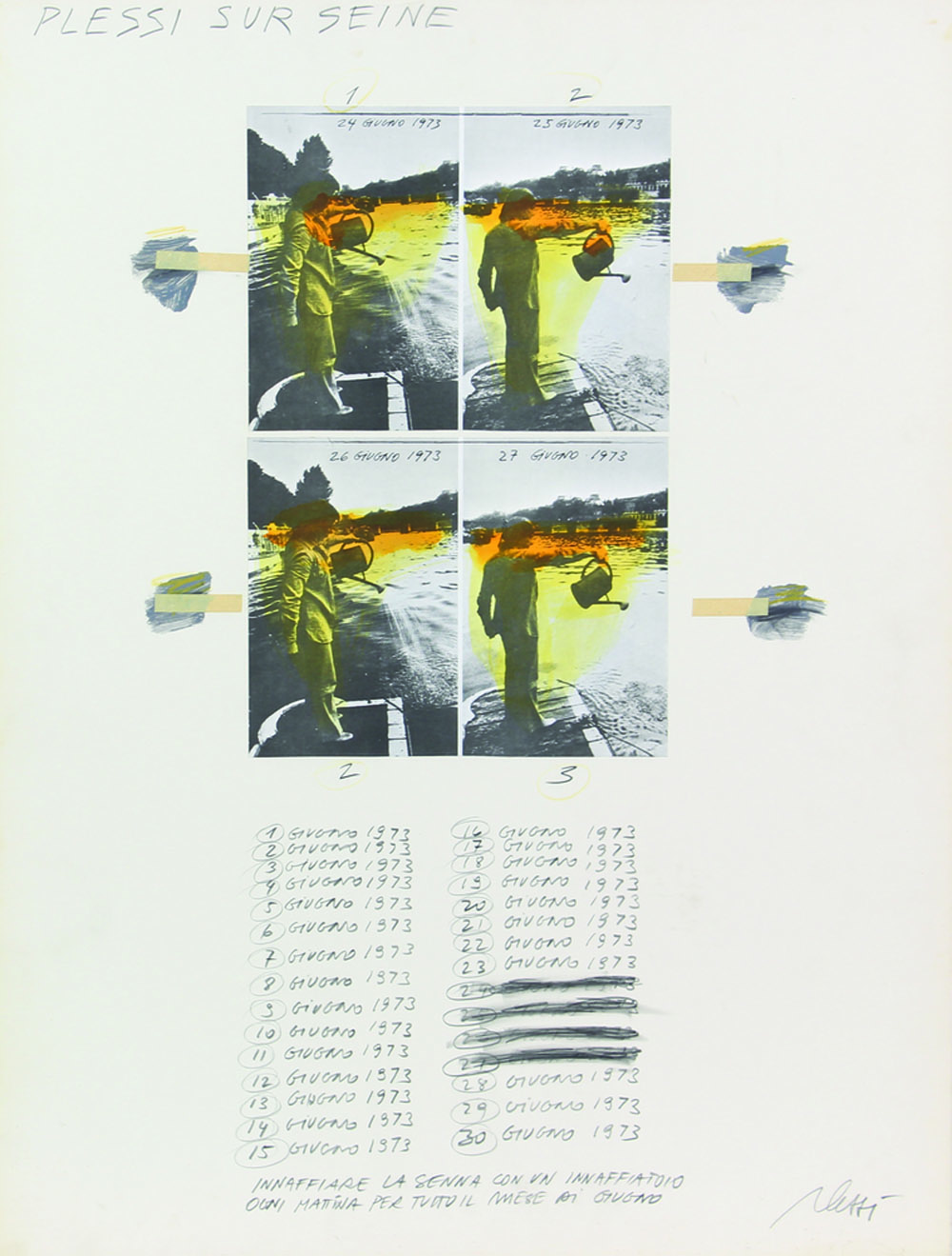 Fabrizio Plessi, Plessi sur Seine, tecnica mista e collage su cartoncino, cm....