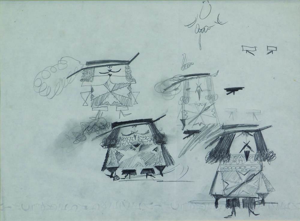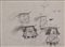Pino Pascali, I Tre Moschettieri, 1961/1962, grafite su carta, cm. 21x28, certificato di archiviazione su fotografia dell'Archivio Pino Pascali